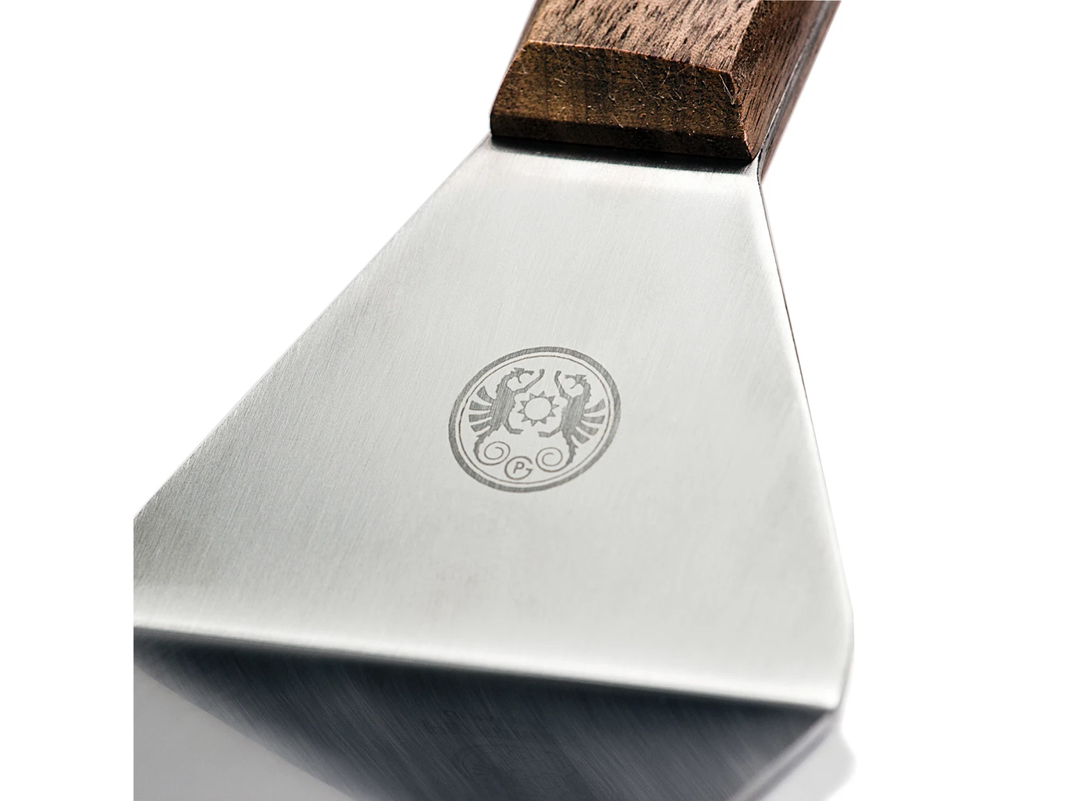 Vanaf nu keer je vlees, vis en groenten om met de flexibele spatel van Petromax. Niet alleen vanwege de comfortabele houten handgreep, die erg prettig in de hand ligt, maar ook omdat het zeer gemaakte spatelblad is gemaakt van geborsteld roestvrij staal.