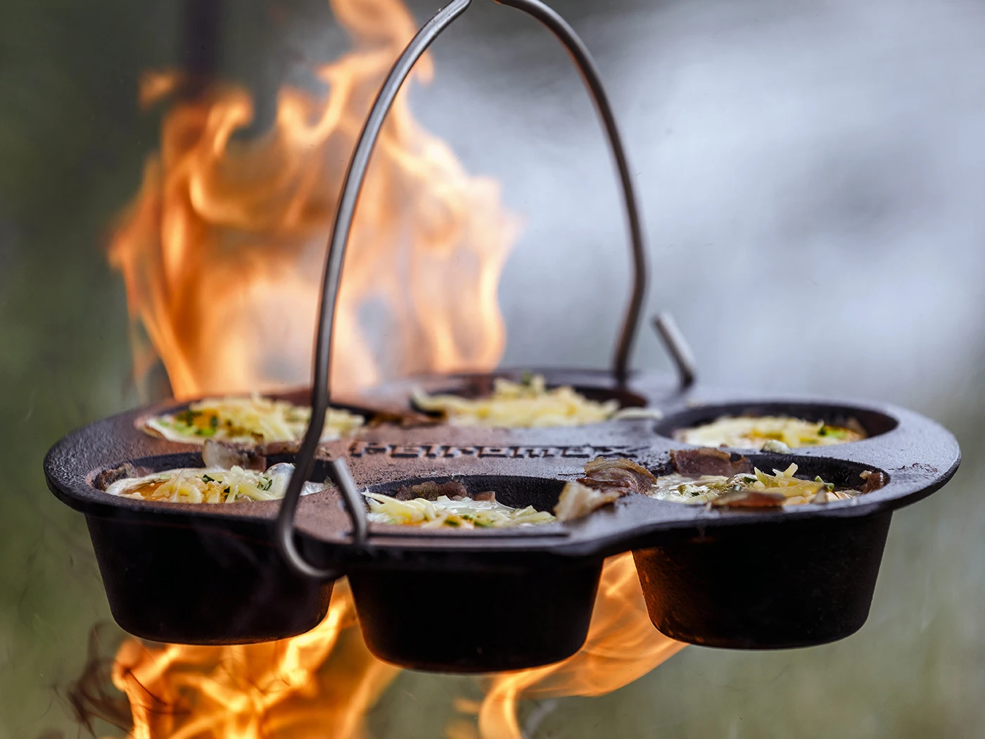 De Petromax Muffinvorm biedt ruimte voor maar liefst 6 heerlijke muffins. Een muffinpan is een bakvorm met meerdere holtes, ontworpen om muffins, cupcakes en andere kleine gebakjes te maken. De Gietijzeren vorm is voorzien van een handig hengsel met een kleine uitsparing om de vorm makkelijk en stabiel boven een vuur te hangen. Ook kan je hem natuurlijk rechtstreeks in het vuur plaatsen of op een andere hittebron gebruiken. Ook past de vorm in Petromax Dutch Ovens vanaf de FT6. Met de 6 muffin plekken kun je eindeloos combineren. Van naturel muffins tot hartige taartjes en gebakken eieren. Vrijwel alles wat je kan bedenken smaakt beter uit de muffinvorm boven een heet open vuur.