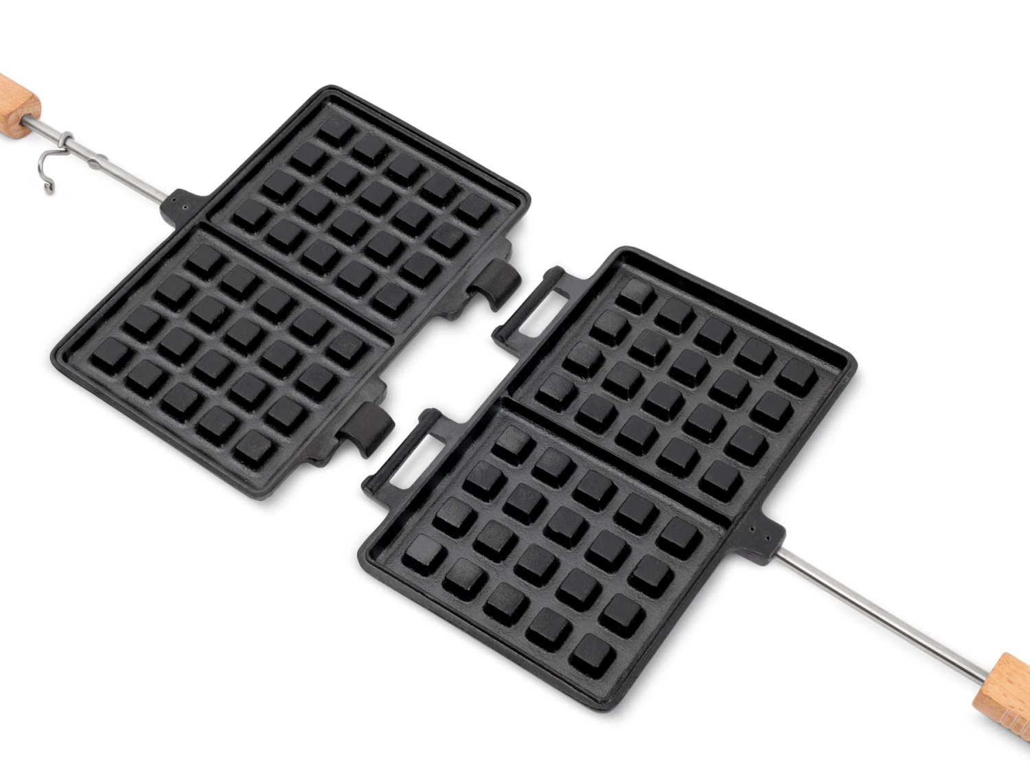 Met het Petromax Gietijzeren Wafelijzer bak je heerlijke wafels! Bijvoorbeeld als heerlijk toetje na een uitgebreide maaltijd rond het vuur, of natuurlijk gewoon als lekker snack tijdens de lunch of als tussendoortje. Het wafelijzer kan met de gietijzeren mal direct in het vuur geplaats worden, maar is uiteraard ook geschikt voor een Atago of gewoon op een andere BBQ. Draai de vorm tussendoor voor een perfecte knapperige wafel. Door de praktische vergrendelhaak zitten beide kanten van de vorm goed op elkaar gedrukt waardoor het deeg er niet uit loopt. De lange steel met houten handvatten biedt daarnaast het gemak om het ijzer van een afstand in, op of boven de warmtebron te houden. Doordat het gietijzer de warmte goed vasthoudt wordt de wafel gelijkmatig bruin gebakken.