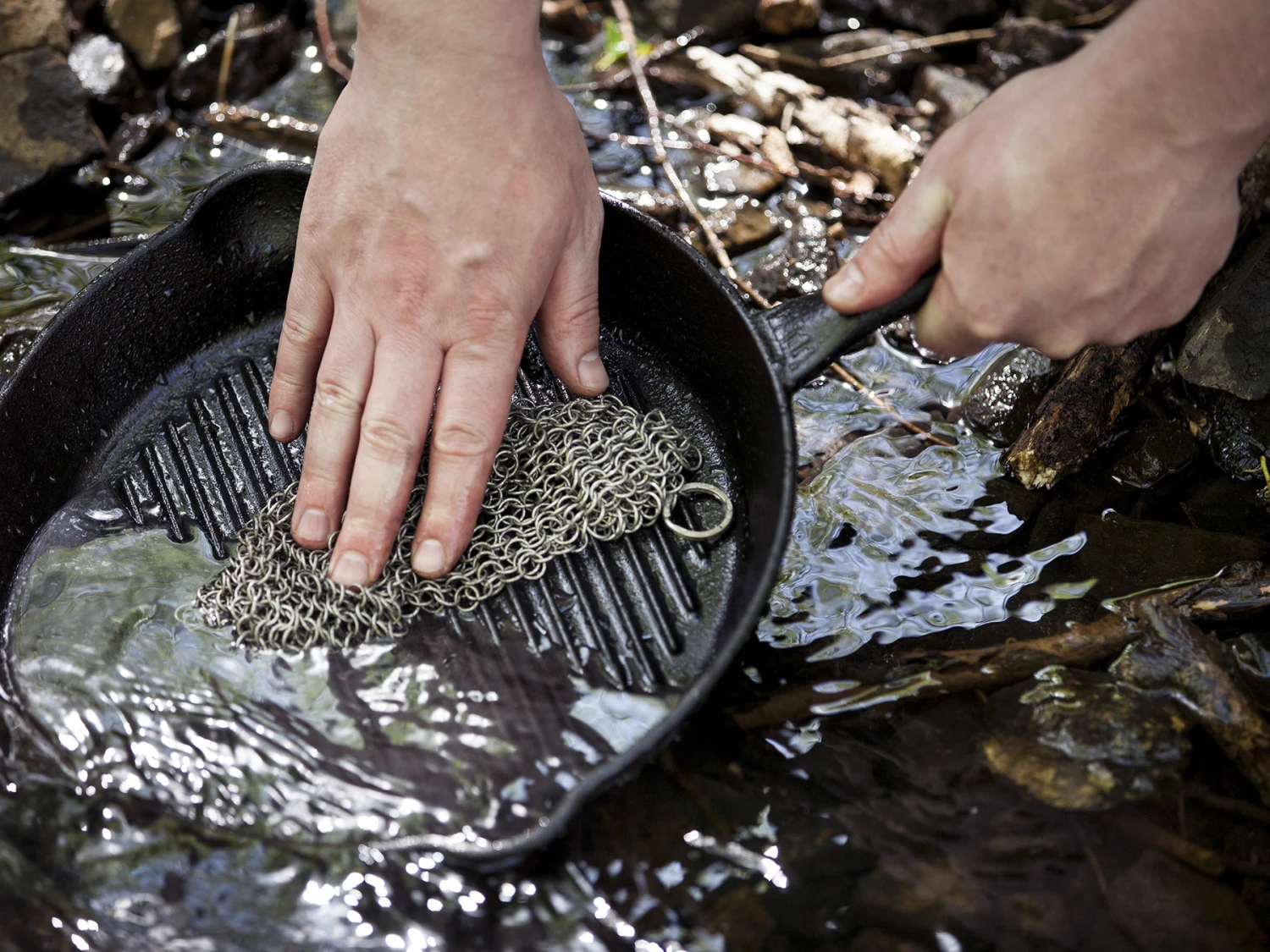 Tip: Schoonmaken zonder afwasmiddel. Laat het kookgerei afkoelen, eventueel even intrekken en schrob de aangebrande resten weg met warm water en de Petromax Scrub mat. Je hebt geen afwasmiddel nodig! Spoel het kookgerei na het reinigen opnieuw grondig af. Voordat je je gietijzeren of smeedijzeren kookgerei weer in de kast zet, moet je het altijd goed afdrogen en behandelen zoals je gewend bent. Ook moet de Scrub mat na het gebruik goed drogen, anders kan er corrosie ontstaan op de mat.