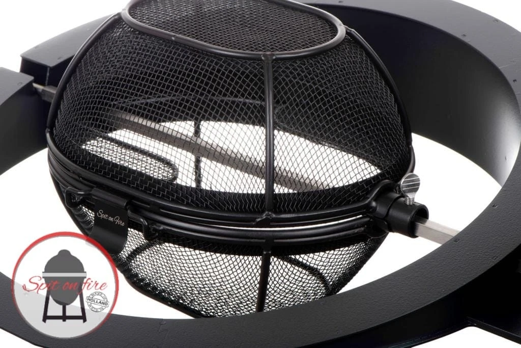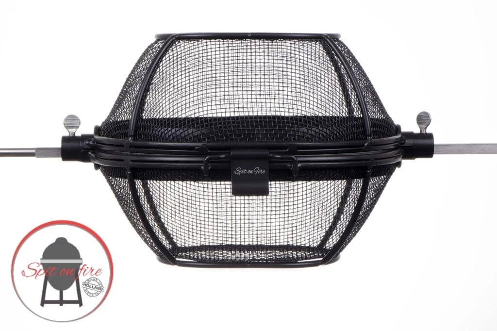 Het spit mandje is verkrijgbaar in twee afmetingen, de compact/ medium mand en de Large/ XL mand. De Large/ XL mand past alleen op de rotisserie Large of XL.
