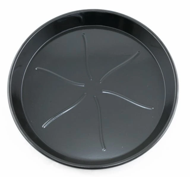 De ronde lekbak is van staal gemaakt en voorzien van een anti-aanbaklaag.